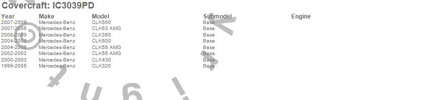 Below is an abbreviated list of applications for the Custom Convertible Interior Cover.CLK320, CLK350, CLK430, CLK500, CLK55 AMG, CLK550, CLK63 AMG, Mercedes-Benz, 2009, 2008, 2007, 2006, 2005, 2004, 2003, 2002, 2001, 2000, 1999