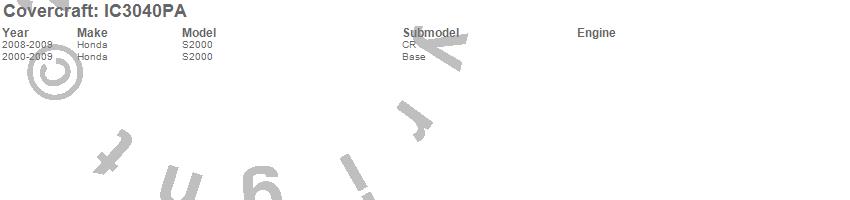 Below is an abbreviated list of applications for the Custom Convertible Interior Cover.S2000, Honda, 2009, 2008, 2007, 2006, 2005, 2004, 2003, 2002, 2001, 2000