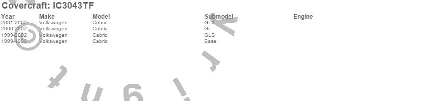 Below is an abbreviated list of applications for the Custom Convertible Interior Cover.Cabrio, Volkswagen, 2002, 2001, 2000, 1999