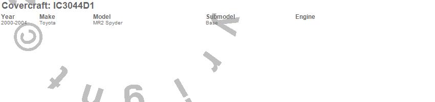 Below is an abbreviated list of applications for the Custom Convertible Interior Cover.MR2 Spyder, Toyota, 2004, 2003, 2002, 2001, 2000