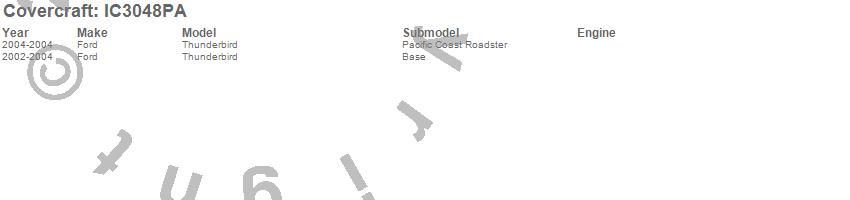 Below is an abbreviated list of applications for the Custom Convertible Interior Cover.Thunderbird, Ford, 2004, 2003, 2002