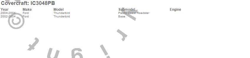 Below is an abbreviated list of applications for the Custom Convertible Interior Cover.Thunderbird, Ford, 2004, 2003, 2002