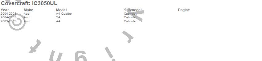 Below is an abbreviated list of applications for the Custom Convertible Interior Cover.A4, A4 Quattro, S4, Audi, 2009, 2008, 2007, 2006, 2005, 2004, 2003
