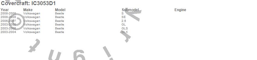 Below is an abbreviated list of applications for the Custom Convertible Interior Cover.Beetle, Volkswagen, 2008, 2007, 2006, 2005, 2004, 2003