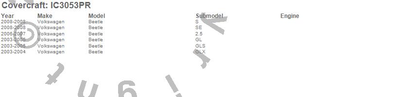 Below is an abbreviated list of applications for the Custom Convertible Interior Cover.Beetle, Volkswagen, 2008, 2007, 2006, 2005, 2004, 2003