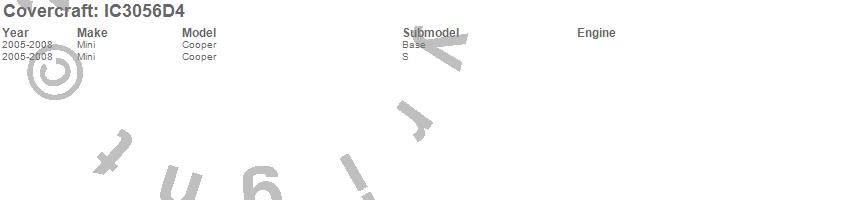 Below is an abbreviated list of applications for the Custom Convertible Interior Cover.Cooper, Mini, 2008, 2007, 2006, 2005