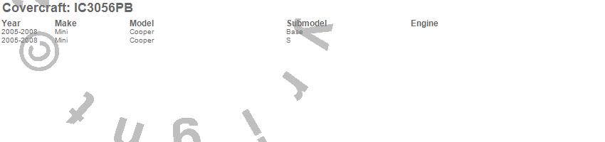 Below is an abbreviated list of applications for the Custom Convertible Interior Cover.Cooper, Mini, 2008, 2007, 2006, 2005