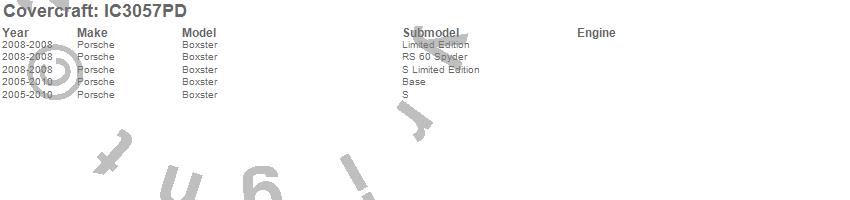 Below is an abbreviated list of applications for the Custom Convertible Interior Cover.Boxster, Porsche, 2010, 2009, 2008, 2007, 2006, 2005