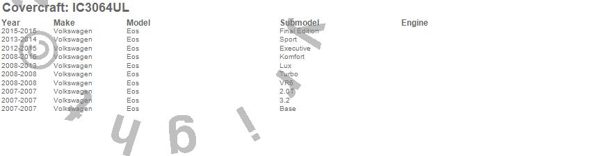 Below is an abbreviated list of applications for the Custom Convertible Interior Cover.Eos, Volkswagen, 2016, 2015, 2014, 2013, 2012, 2011, 2010, 2009, 2008, 2007