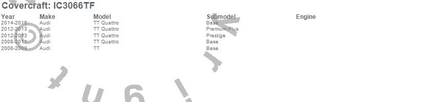 Below is an abbreviated list of applications for the Custom Convertible Interior Cover.TT, TT Quattro, Audi, 2015, 2014, 2013, 2012, 2011, 2010, 2009, 2008