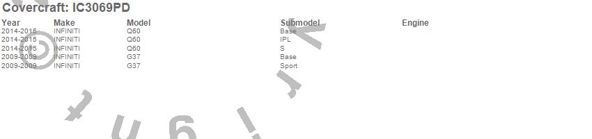 Below is an abbreviated list of applications for the Custom Convertible Interior Cover.G37, Q60, INFINITI, 2015, 2014, 2009