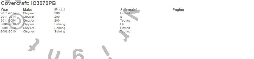 Below is an abbreviated list of applications for the Custom Convertible Interior Cover.200, Sebring, Chrysler, 2014, 2013, 2012, 2011, 2010, 2009, 2008