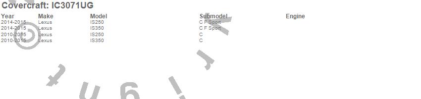 Below is an abbreviated list of applications for the Custom Convertible Interior Cover.IS250, IS350, Lexus, 2015, 2014, 2013, 2012, 2011, 2010