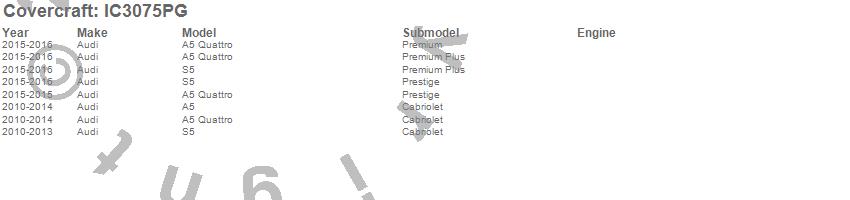Below is an abbreviated list of applications for the Custom Convertible Interior Cover.A5, A5 Quattro, S5, Audi, 2016, 2015, 2014, 2013, 2012, 2011, 2010
