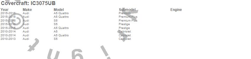 Below is an abbreviated list of applications for the Custom Convertible Interior Cover.A5, A5 Quattro, S5, Audi, 2016, 2015, 2014, 2013, 2012, 2011, 2010