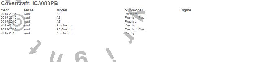 Below is an abbreviated list of applications for the Custom Convertible Interior Cover.A3, A3 Quattro, Audi, 2016, 2015