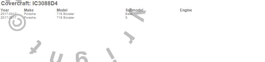 Below is an abbreviated list of applications for the Custom Convertible Interior Cover.718 Boxster, Porsche, 2017