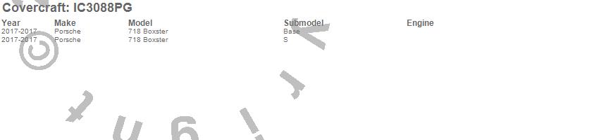 Below is an abbreviated list of applications for the Custom Convertible Interior Cover.718 Boxster, Porsche, 2017
