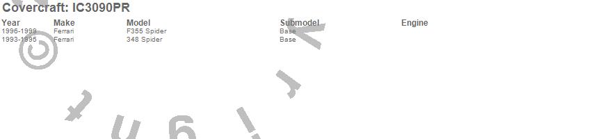 Below is an abbreviated list of applications for the Custom Convertible Interior Cover.348 Spider, F355 Spider, Ferrari, 1999, 1998, 1997, 1996, 1995, 1994, 1993