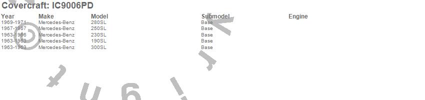 Below is an abbreviated list of applications for the Custom Hardtop Cover.190SL, 230SL, 250SL, 280SL, 300SL, Mercedes-Benz, 1971, 1970, 1969, 1967, 1966, 1965, 1964, 1963