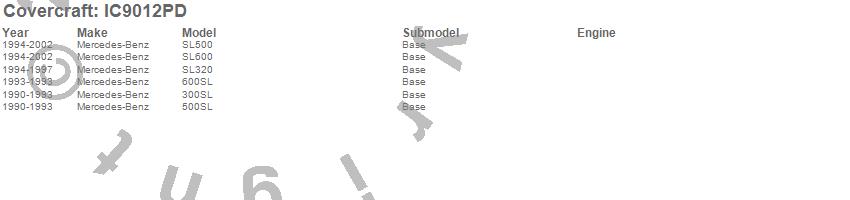 Below is an abbreviated list of applications for the Custom Hardtop Cover.300SL, 500SL, 600SL, SL320, SL500, SL600, Mercedes-Benz, 2002, 2001, 2000, 1999, 1998, 1997, 1996, 1995, 1994, 1993, 1992, 1991, 1990