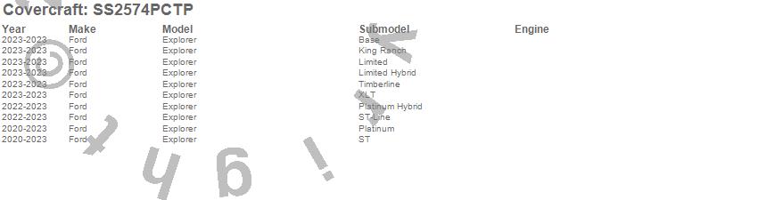 Below is an abbreviated list of applications for the SeatSaver Custom Seat Cover.Explorer, Ford, 2025, 2024, 2023, 2022, 2021, 2020