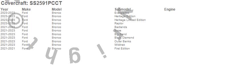 Below is an abbreviated list of applications for the SeatSaver Custom Seat Cover.Bronco, Ford, 2025, 2024, 2023, 2022, 2021