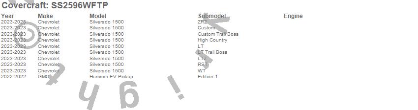 Below is an abbreviated list of applications for the SeatSaver Custom Seat Cover.Hummer EV Pickup, Hummer EV SUV, Silverado 1500, Chevrolet, GMC, 2026, 2025, 2024, 2023, 2022