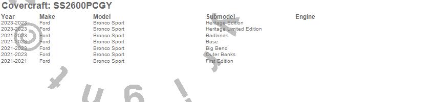 Below is an abbreviated list of applications for the SeatSaver Custom Seat Cover.Bronco Sport, Ford, 2025, 2024, 2023, 2022, 2021