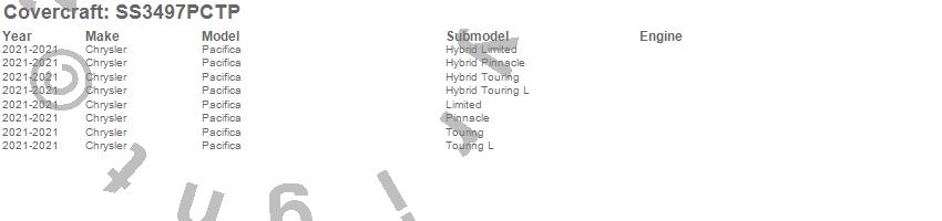 Below is an abbreviated list of applications for the SeatSaver Custom Seat Cover.Pacifica, Chrysler, 2021