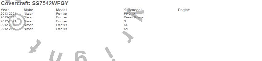 Below is an abbreviated list of applications for the SeatSaver Custom Seat Cover.Frontier, Nissan, 2021, 2020, 2019, 2018, 2017, 2016, 2015, 2014, 2013, 2012