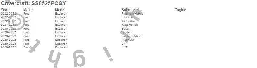 Below is an abbreviated list of applications for the SeatSaver Custom Seat Cover.Explorer, Ford, 2025, 2024, 2022, 2021, 2020