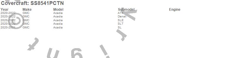Below is an abbreviated list of applications for the SeatSaver Custom Seat Cover.Acadia, GMC, 2022, 2021, 2020