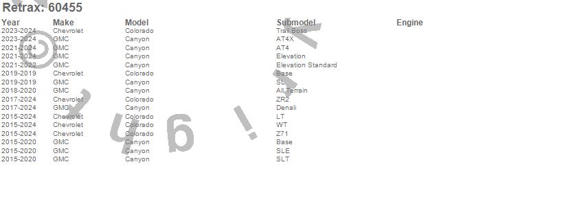 Below is an abbreviated list of applications for the RetraxONE MX Retractable Tonneau Cover.Canyon, Colorado, Chevrolet, GMC, 2026, 2025, 2024, 2023, 2022, 2021, 2020, 2019, 2018, 2017, 2016, 2015