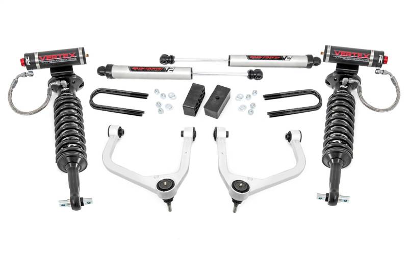Brand: Rough CountryPart Number: 28857Lift Kit-Suspension w/Shock Type: 3.5 in. Lift - Incl. Strut Spacers - Forged Aluminum Upper Control Arms - Upper POM Ball Joints - Mono-Leaf Spring - Vertex Coilovers w/V2 Rear ShocksUPC: 840269927461