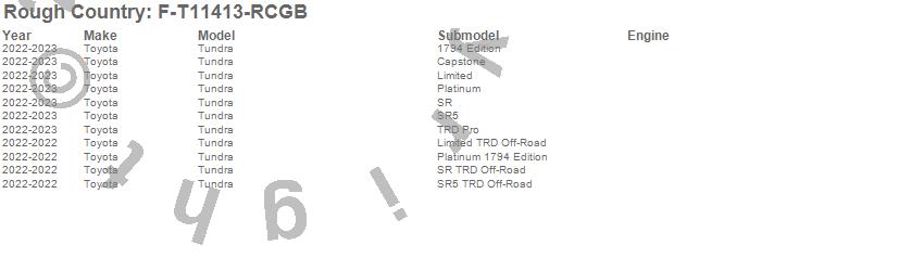 Brand: Rough CountryPart Number: F-T11413-RCGBFender Flare Type: Traditional - Gloss BlackUPC: 840269924590
