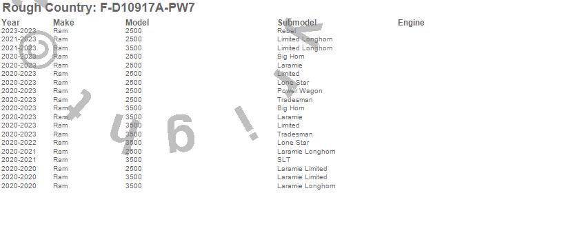 Brand: Rough CountryPart Number: F-D10917A-PW7Fender Flare Type: Bright WhiteUPC: 840269927256
