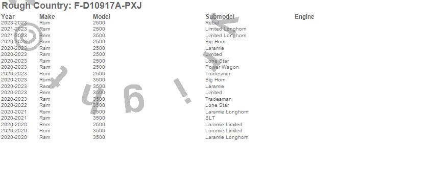 Brand: Rough CountryPart Number: F-D10917A-PXJFender Flare Type: Diamond BlackUPC: 840269927263