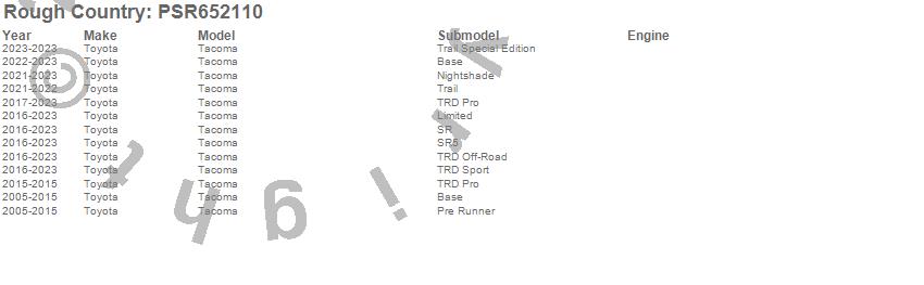 Brand: Rough CountryPart Number: PSR652110Power Running Board Type: Incl. [4] Step Brackets/Actuators - [2] Electric EBoard - [1] EBoard Wiring Harness - [4] Eboard Lights: [4] Magnetic Door TriggersUPC: 840269923401