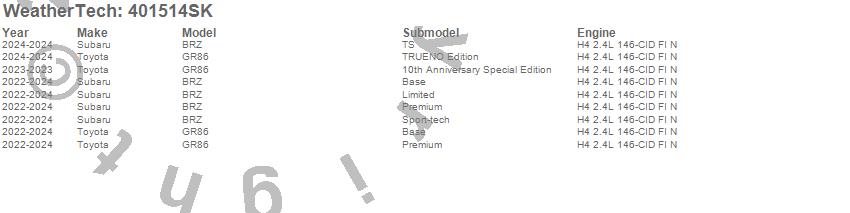 Below is an abbreviated list of applications for the Cargo Liner w/Bumper Protector.BRZ, GR86, Subaru, Toyota, 2025, 2024, 2023, 2022