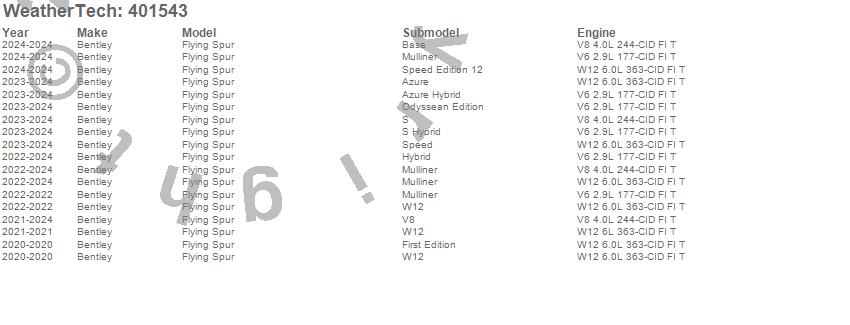 Below is an abbreviated list of applications for the Cargo Liner.Flying Spur, Bentley, 2024, 2023, 2022, 2021, 2020