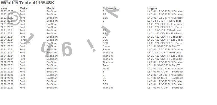 Below is an abbreviated list of applications for the Cargo Liner w/Bumper Protector.EcoSport, Ford, 2022, 2021, 2020