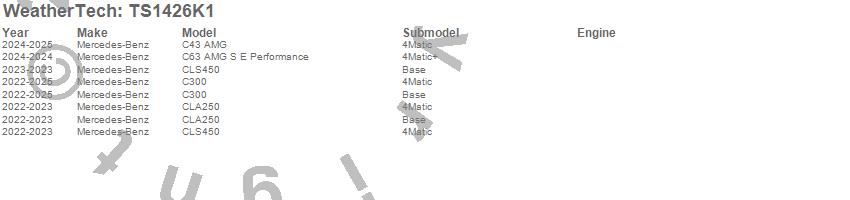 Below is an abbreviated list of applications for the WeatherTech SunShade Full Vehicle Kit.C300, C43 AMG, C63 AMG S E Performance, CLA250, CLS450, Mercedes-Benz, 2025, 2024, 2023, 2022