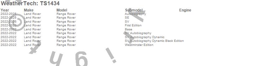 Below is an abbreviated list of applications for the WeatherTech SunShade.Range Rover, Land Rover, 2025, 2024, 2023, 2022