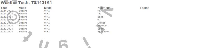 Below is an abbreviated list of applications for the WeatherTech SunShade Full Vehicle Kit.WRX, Subaru, 2024, 2023, 2022