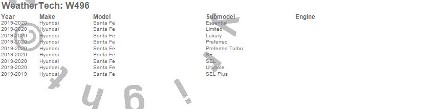 Below is an abbreviated list of applications for the All Weather Floor Mats.Santa Fe, Hyundai, 2020, 2019