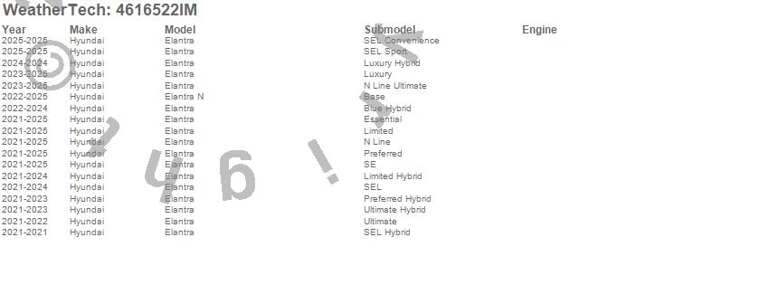Below is an abbreviated list of applications for the FloorLiner HP.Elantra, Elantra N, Hyundai, 2026, 2025, 2024, 2023, 2022, 2021