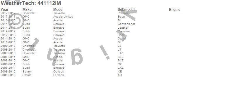 Below is an abbreviated list of applications for the FloorLiner HP.Acadia, Acadia Limited, Enclave, Outlook, Traverse, Buick, Chevrolet, GMC, Saturn, 2017, 2016, 2015, 2014, 2013, 2012, 2011, 2010, 2009, 2008
