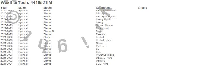 Below is an abbreviated list of applications for the FloorLiner HP.Elantra, Elantra N, Hyundai, 2025, 2024, 2023, 2022, 2021