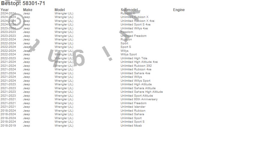 Below is an abbreviated list of applications for the OE JL Replacement Windows.Wrangler, Wrangler (JL), Jeep, 2026, 2024, 2023, 2022, 2021, 2020, 2019, 2018